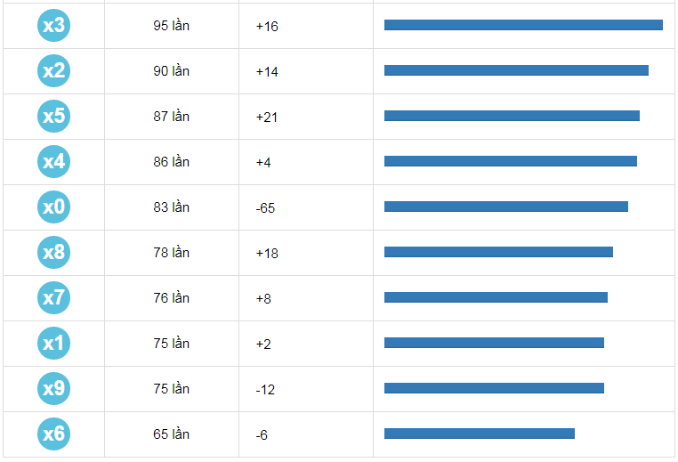 Bảng tần suất xuất hiện 10 số đuôi – ( Dữ liệu minh họa )